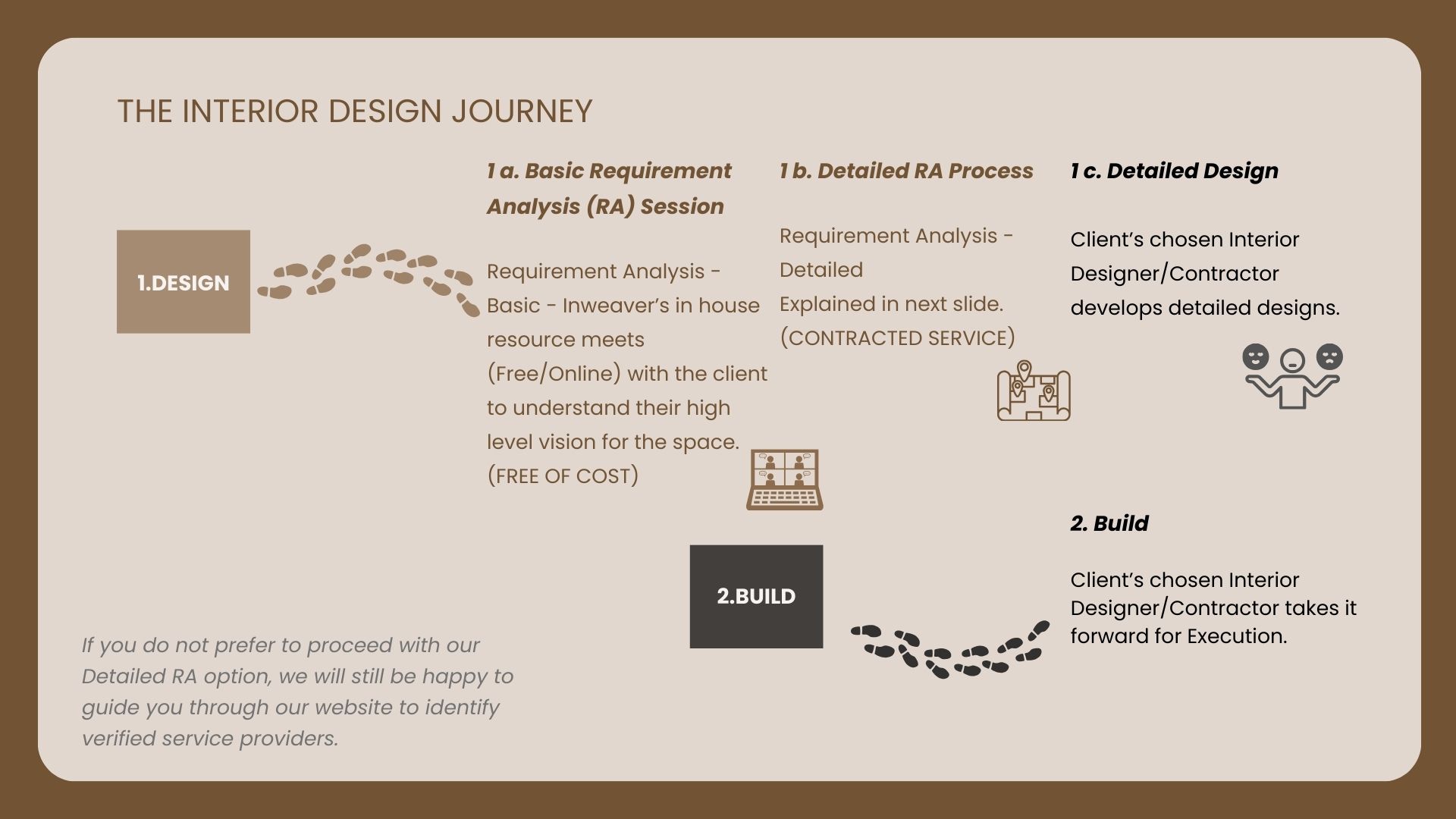 Inweaver believes in specialisations of respective disciplines. So we focus on just 2 things - validation of Service Providers with the best credentials & Requirement Analysis for Customers Projects.